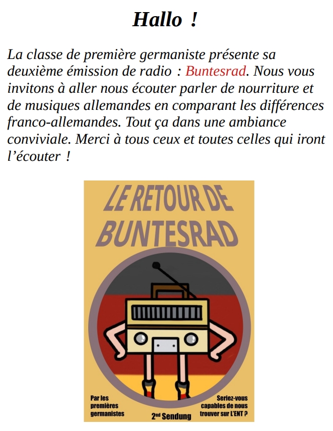 BUNTESRAD - la webradio germanisante de la Cité scolaire fait son retour!