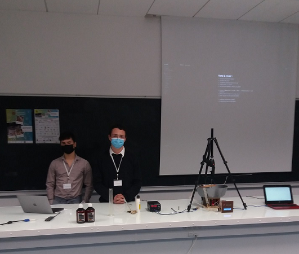 Après quarante minutes de présentation et de questions, les deux élèves ont rejoint les autres équipes et leur stand pour présenter leur travail au grand public.. Ce fut l’occasion pour eux de découvrir les autres thèmes abordés : l’effet Magnus, l’étude du réchauffement d’élastiques après plusieurs étirements, les feux de Saint Elme , l’arc-en-ciel…